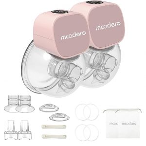 Momcozy M5 Hands-Free Wearable Breast Pump, Double-Sealed Flange for Baby-Like Comfort, 3 Modes & 9 Suction Levels, Portable Electric Pump – 24mm, 2-Pack Cozy Red