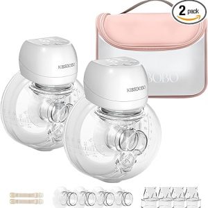 KISSBOBO ABP-1508 Hands Free Breast Pump Wearable with Storage Bag, Wearable Breastfeeding Pump Strong Suction, Low Noise, 3 Modes 9 Levels, with 21/24mm Insert/Flange, 2 Pack (White)